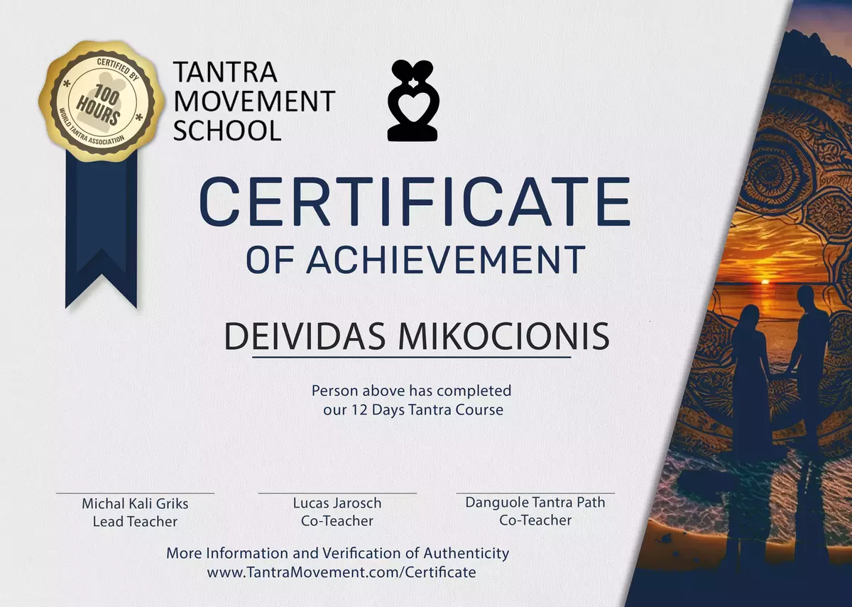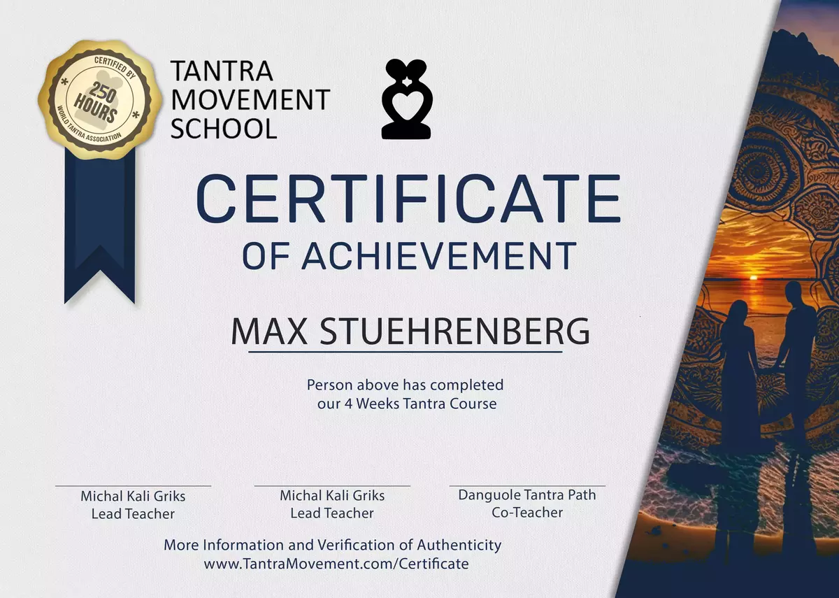 Completed 12 Days Tantra Massage Course and therefore is qualified to practice.
